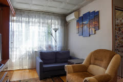 Двухкомнатная квартира площадью 45,9 м² с жилой зоной 31,1 м² расположена на четвертом этаже пятиэтажного кирпичного дома в районе Радуга. Раздельная планировка обеспечивает приватность: комнаты изолированы, кухня и санузел не являются проходными. Совмещенный санузел оборудован бойлером для бесперебойного горячего водоснабжения. В квартире заменена электропроводка, установлены новые пластиковые окна с балконным блоком, надежные входные двери. Балкон неостекленный, с выходом из гостиной. Окна выходят на дорогу, что обеспечивает хорошую инсоляцию в дневное время. Дом отличается качественной теплоизоляцией, во дворе достаточно места для парковки и отдыха.